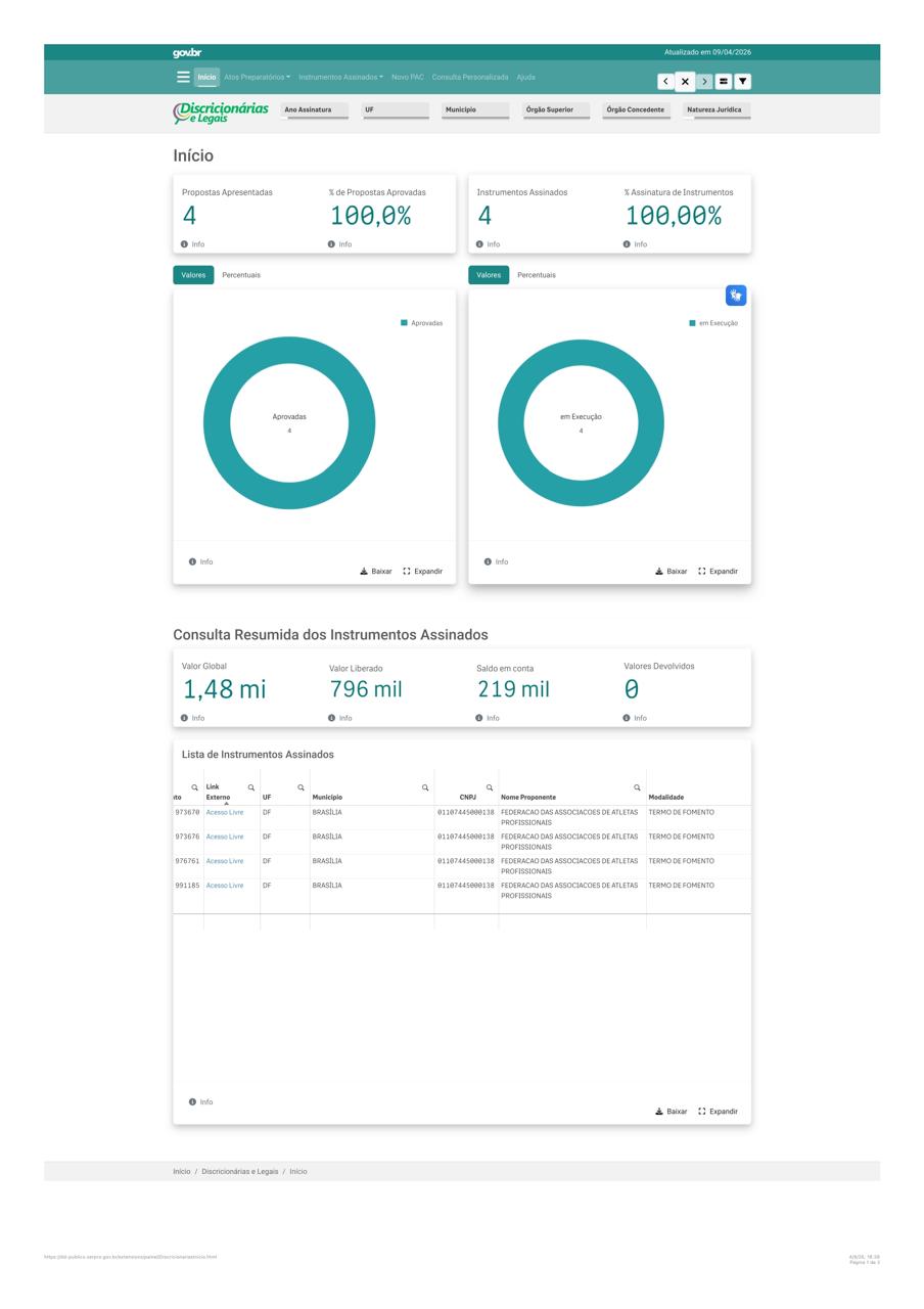 Emenda Parlamentar – Transferências discricionárias legais – 09/04/2026.